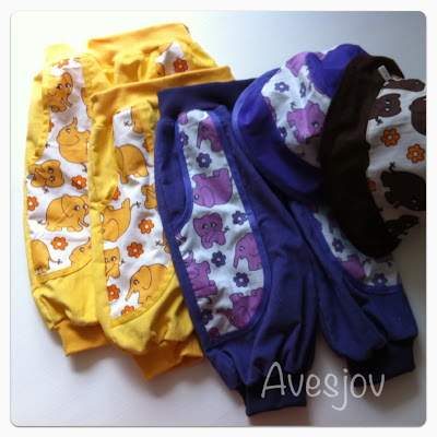 Nedenfor ses også billeder af de Avesjov kreationer, der er på vej til nye ejere i disse dage - gul, brun og lilla - og ikke mindst elefanter - ser ud til at være populært? Mangler du også lidt lækkert til dine børns sommergardarobe, så kan du kigge ind i Avesjov-shoppen og se, hvad vi har af muligheder.